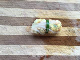 把菜叶和香葱叶放入开水中烫软就行。如果馅料正好包完,就直接用番茄酱调汁就行。蒸菜包卷时盆里多出的菜汁不多,所以再放点水淀粉勾芡,汁水不要太少哦。