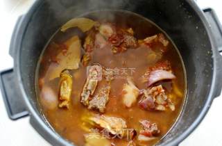 转入电压力锅中,并且加入刚没过材料的水按蹄筋键烧开