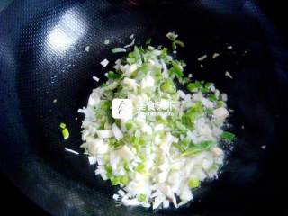 炒锅里放入适量油(和平时炒菜的油量一样)倒入葱末煸香。