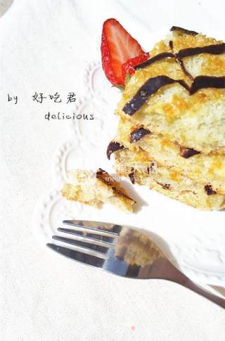 “ 很常见的千叶纹蛋糕,常做成蛋糕卷的样子,我觉得自己没那个水平,没有卷,直接切成蛋糕块儿了,而且加了点儿树莓果酱,味道也超棒哟~ ”