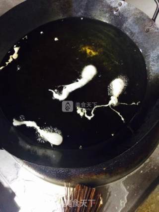 炒锅下油炸白虾,白虾粘糊下锅炸