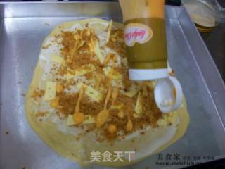 最上层放上芝士丝排列在上。撒上适量的芝麻,辣椒酱及番茄酱即可。(忘了拍照)