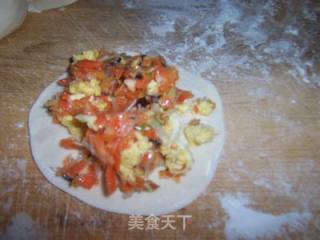 面团分成大小均匀的小面团。擀成中间厚,外围薄的面饼。