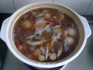 因为泥鳅还是活的,所以左手拿盖,右手迅速倒入泥鳅,左手马上盖盖,继续煮五分钟,下入适量鸡精,即可上桌享用,非常简单的做法呢!