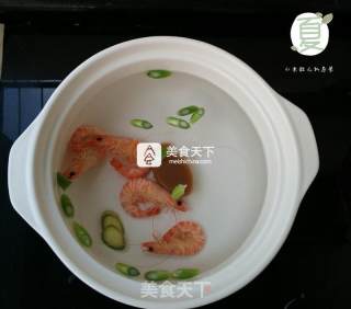 砂锅加入三分之二水,放进葱姜和海虾煮开。