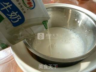 小锅内倒入少量牛奶,加入半包川秀乳酸菌粉(两包纯牛奶用半包乳酸菌即可)。