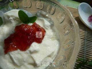 大功告成!放上草莓酱,尽情的享受老酸奶的美味吧!不加糖的酸奶奶香浓郁,口感爽滑!