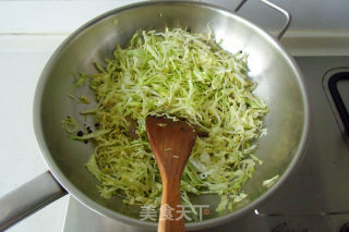 炒至卷心菜变软,加入泡好的粉丝,翻炒均匀。
