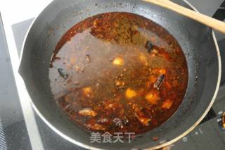 把刚刚准备的豆瓣酱全部放进炒锅里,不停的翻炒,直至炒出红油。