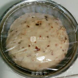 黄油完全和入面团,表面微光滑用保鲜膜盖好发酵
