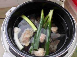 高压锅中放入葱姜,卤料包人参黄芪白芷,牛肉,注入适量的清水。我水放的比较多,一部分牛肉汤晚上做汤底煮了小火锅。剩下的做了淮南牛肉汤当早饭。除了高压锅,也可以用砂锅或者铸铁锅珐琅锅等等。我图个方便,其实滋味还是砂锅等更好