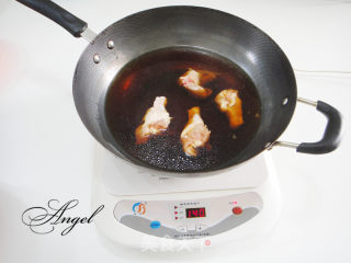 炒锅里放入鸡翅根,加入豉油鸡汁和可以没过鸡翅根的水。