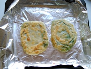 煎饼的时候烤箱就可以预热,180度预热好,煎好的饼中层再烤3分钟。