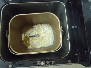 120克中筋粉、10克白糖、30克玉米油、50克热水放入面包集中,启动揉面程序。