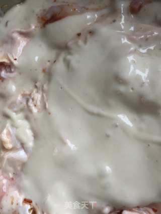3、腌制好的鱼泡上浆很关键,挂糊越饱满,炸出来的鱼泡酥肉更饱满更蓬松,效果更佳。