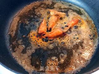 锅烧热倒入适量的油加入虾头炒出红虾油