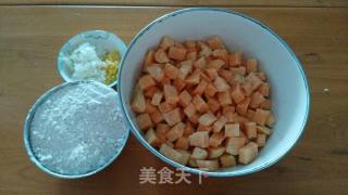 准备好原料,红薯洗净去皮切小块,洋葱切末,生姜切末。