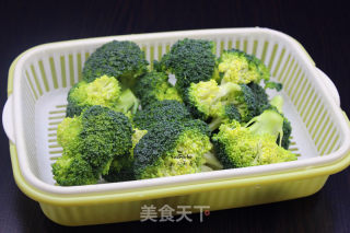 汆汤好的西兰花捞出,过冰水的盆子;PS:保持西兰花的颜色,还脆爽