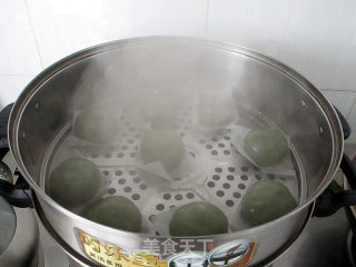 用虎口收口后放入垫上防粘纸的蒸笼内,不用防粘纸可以刷上油防粘