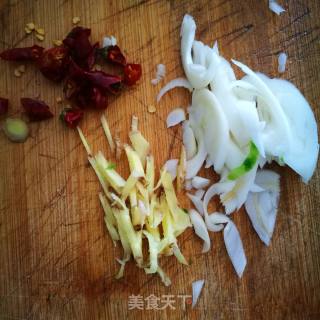 葱5克切片,姜4克切丝,干辣椒3个切丝。