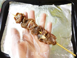 竹签一定要用水泡过才放进烤箱,不然干的很容易烧焦。