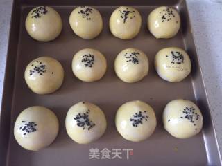 表面刷蛋液,撒上一层黑芝麻(我用的全蛋液,如果要上色深好看一些,可以蛋黄液)