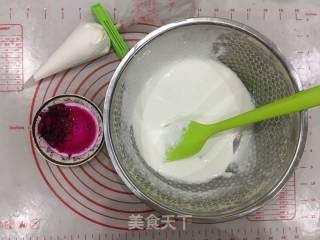 白色和粉色棉花糊装好的裱花袋,尖头处剪开一个4毫米大小的口子。