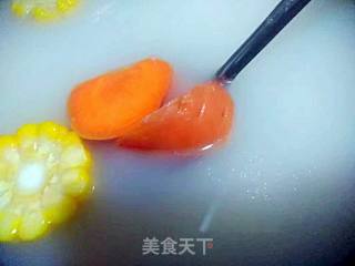 2、因为先用玉米、红萝卜煲粥底时间长,足够时间让粥出稠,大米下锅前就不需要腌制了。