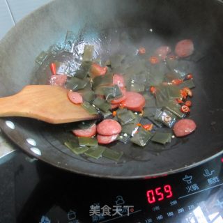 本次制作《海带炒烤肠》所使用的厨具:不粘锅、平底锅、炒锅