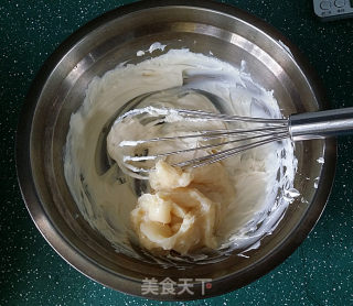 将豆乳奶酪酱、打发的淡奶油:分别装入带有花嘴的裱花袋中
