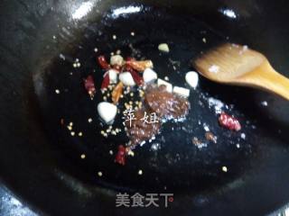 植物油放大蒜,姜片,干辣椒,豆瓣酱炒出香味