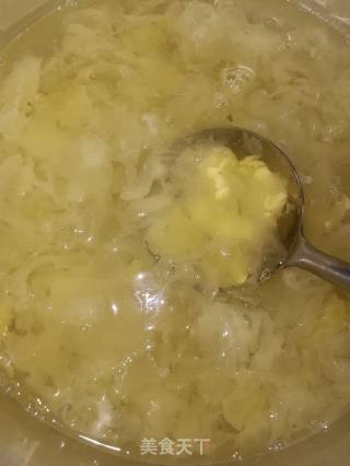 成品,煮好的银耳百合汤冷确过后放冰箱冷藏味道更佳!