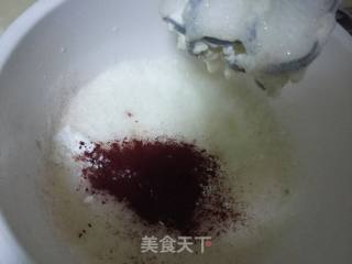 蛋黄搅拌均匀,放入面粉,红曲粉。