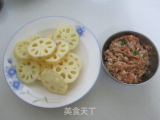 糯米淘洗干净用清水浸泡6小时 ,备好莲藕和猪肉末