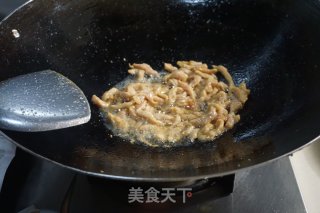 肉丝切成条,放入盐酱油腌入味,10分钟后,到入水淀粉拌匀。油锅放油烧热,到入肉丝炒到刚熟就可以了。因为肉丝还有出现在锅里与茄子小姐见面。