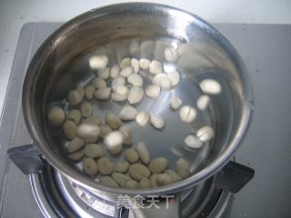 花生用热水浸泡1小时左右,剥去花生衣。冰糖待用。