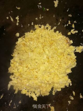 起油锅倒入适量底油下鸡蛋划散捞出备用