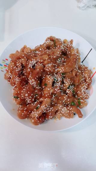 装盘后,在肉上面撒上一层白芝麻,又香菜的颜值也提高了不少