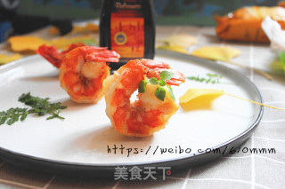 虾洗净,去头去壳去虾线后备用(留尾巴造型用); 虾肉中加入料酒2勺、盐1g、胡椒粉少许,腌渍10分钟; 虾肉用厨房纸吸干水分,放入约2勺淀粉裹住表面; 热锅凉油,先中小火煎下造型,之后转小火煎熟; 食用时直接蘸食香醋