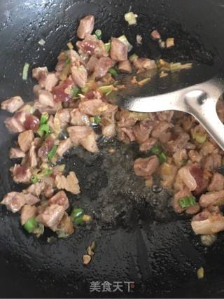 肉丁内刀工适量食盐,油,生抽,搅拌均匀,静置入味