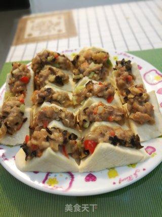 把馅酿入豆腐内,做成酿豆腐