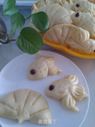 二次醒发15分钟,入蒸锅,蒸15分钟,关火后闷3分钟,漂亮的小金鱼胖嘟嘟跳出来了。