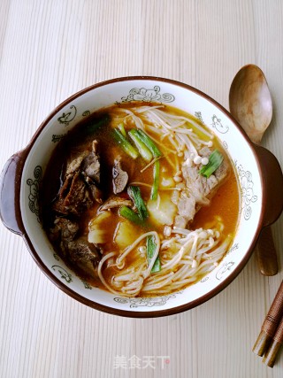等金针蘑煮熟,出锅前放入小葱段即可。