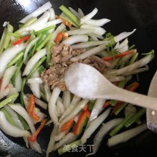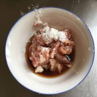 加入料酒、生抽、盐、生粉拌匀、腌制片刻