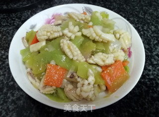 2、炒制过程就是几分钟,不要太久,太久影响鱿鱼口感。
