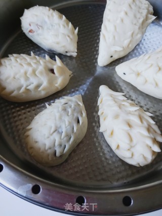 用剪刀剪出刺,用黑芝麻做眼睛。