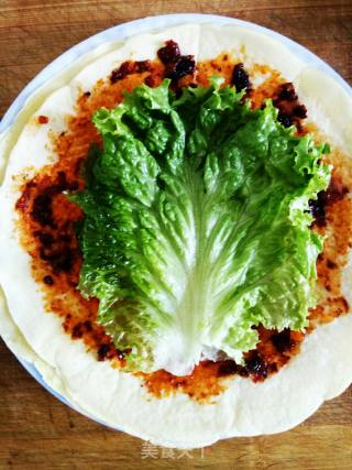 最后放入黄瓜,火腿肠卷起来,用韭菜绑住!