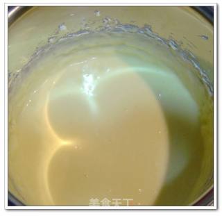 把碗从热水里拿出来,在奶酪糊里倒入淡奶油60ML和香草精1.25ML,搅拌均匀即成奶酪蛋糕糊。