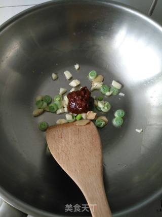 火力调小,加入适量豆瓣酱,炒均匀。