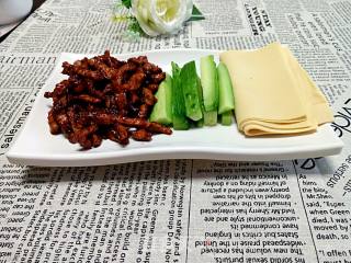 干豆腐切成4小块,黄瓜切小段与肉丝装盘里。干豆腐生吃用蒸锅蒸一下杀菌。